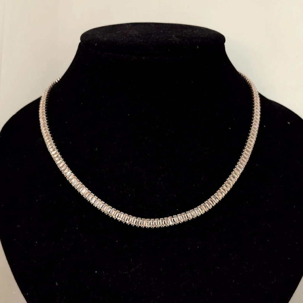 Llevá un toque de sofisticación a tus eventos nocturnos con este collar de piedras alargadas de diseño simétrico. Sus piedras cuidadosamente seleccionadas reflejan la luz, aportando un brillo sutil y elegante que realza cualquier outfit.