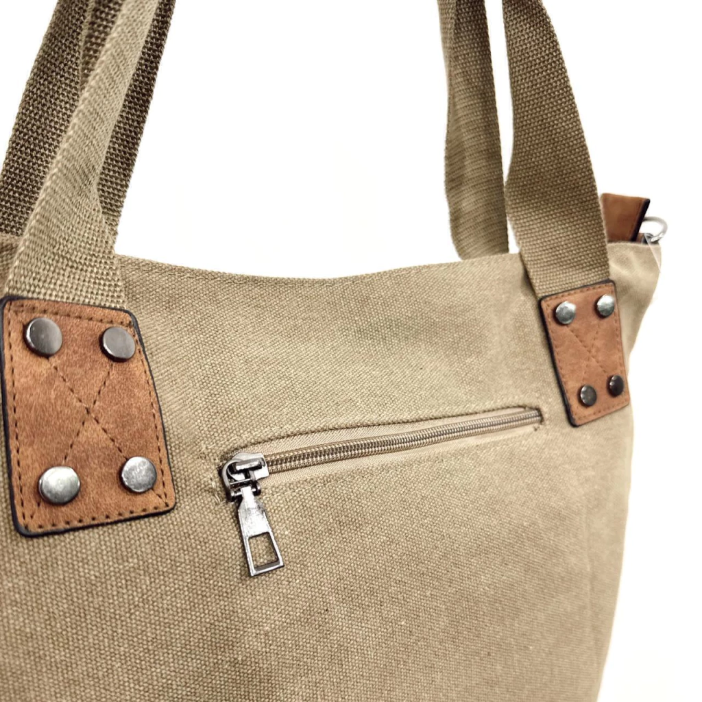 Este bolso de lona es perfecto para el día a día: resistente, liviano y con el espacio ideal para llevar tus esenciales sin perder estilo. Sus manijas reforzadas garantizan comodidad y seguridad en cada uso.