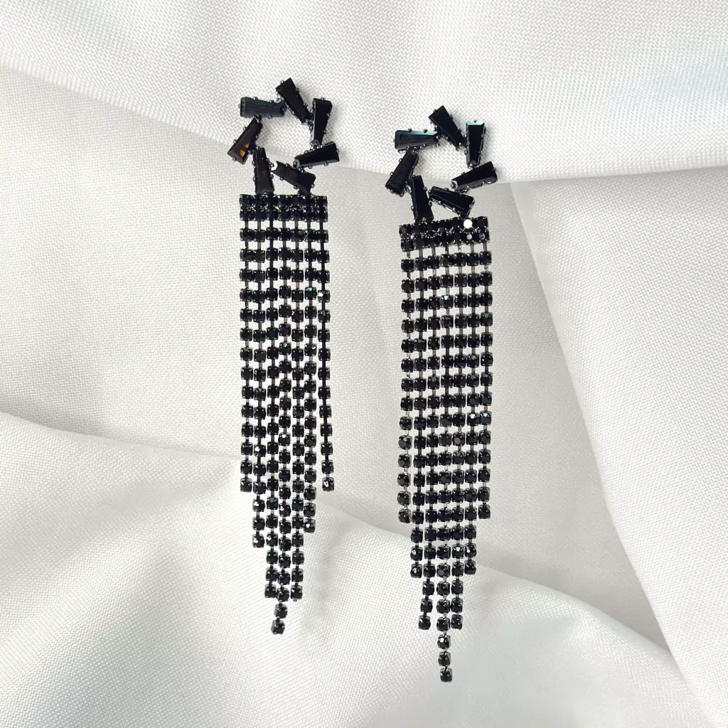 Realzá tu elegancia con estos aros colgantes de bijouterie fantasía fina, diseñados para brillar en esos momentos donde cada detalle cuenta. Su estructura liviana asegura comodidad durante toda la noche, mientras que el brillo del strass refleja la luz en cada movimiento, creando un efecto sofisticado y deslumbrante 💫.