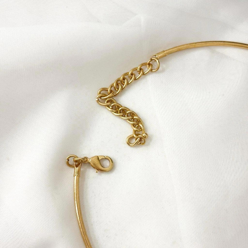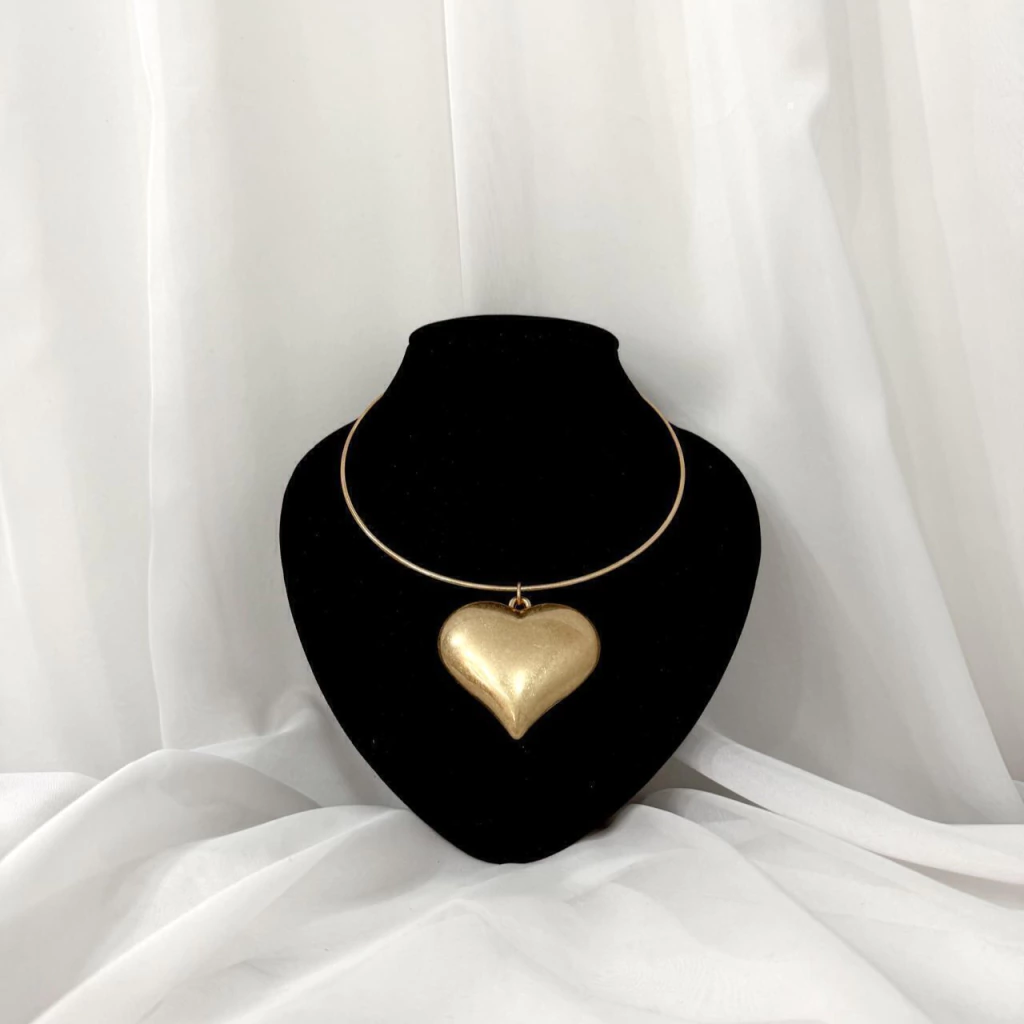 Este collar rígido con dije de corazón combina un diseño minimalista y elegante con un acabado metálico opaco, ideal para quienes aman los accesorios con presencia sutil pero sofisticada. Su cadena regulable permite adaptarlo fácilmente a distintos escotes y estilos.