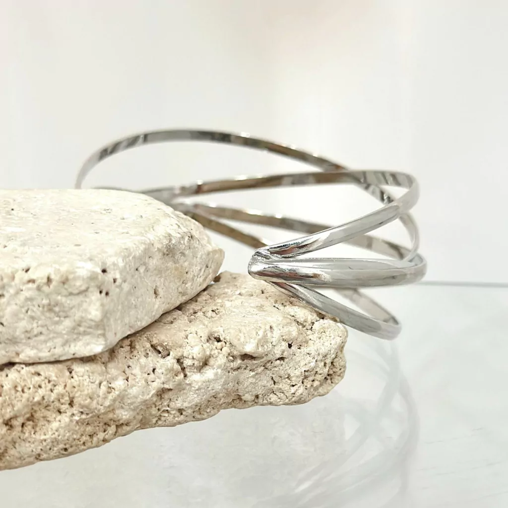 Descubrí el equilibrio perfecto entre estilo y funcionalidad con esta pulsera de aleación de metal, diseñada para realzar tu look con un toque moderno y sofisticado. Su estructura rígida y abierta permite una colocación fácil en el antebrazo, adaptándose cómodamente a distintos tamaños.